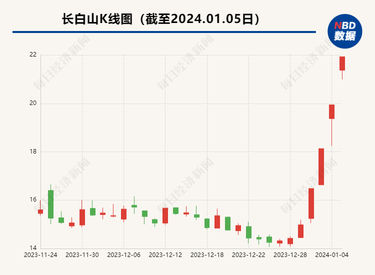 1月5日,长白山、大连圣亚双双收货涨停,而此前,长白山已经连收三个涨停,大连圣亚也已获两个涨停。