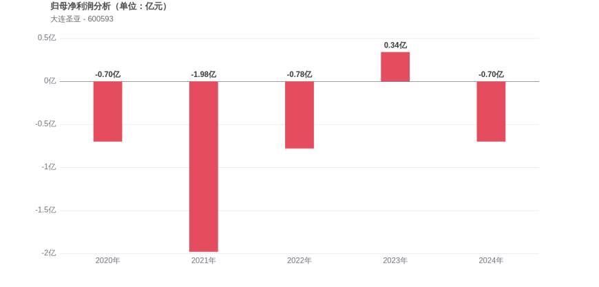 利润角度分析,2020年大连圣亚实现归母净利润-0.70亿元,2024年-0.70亿元。利润水平持续处于亏损状态,盈利能力有待改善。