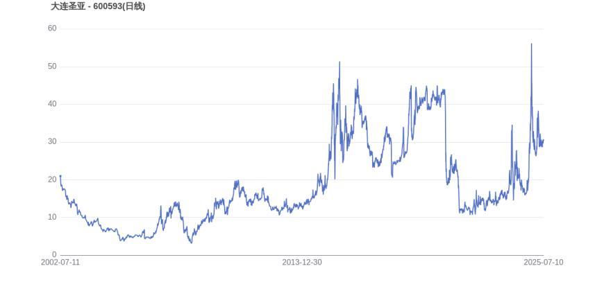 2024年12月17日,大连圣亚的市值巅峰达到73.64亿元,股价也顺应升至57.17元。而至7月10日收盘,大连圣亚的股价为30.55元,市值为39.35亿元,相比峰值时期市值减少34.29亿元,市值蒸发了46.56%。