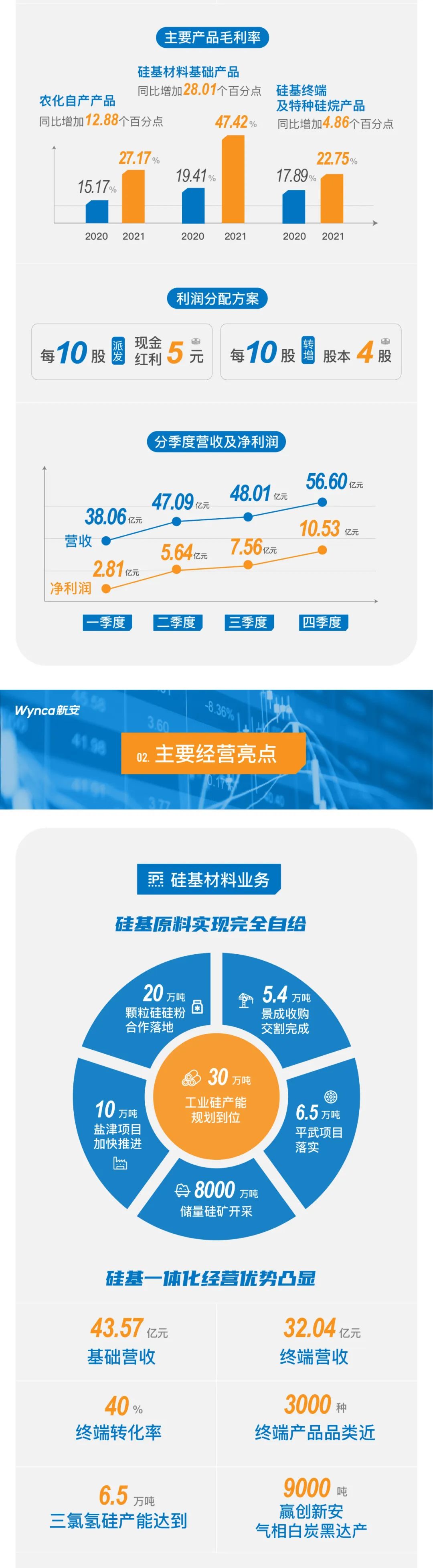 新安股份于2022年3月22日披露年报,公司2021年实现营业总收入189.8亿元,同比增长51.45%,增幅为5年以来最高值;实现归母净利润26.5亿元,同比增长354.56%;实现扣非净利26.73亿元,同比增长567.1%。