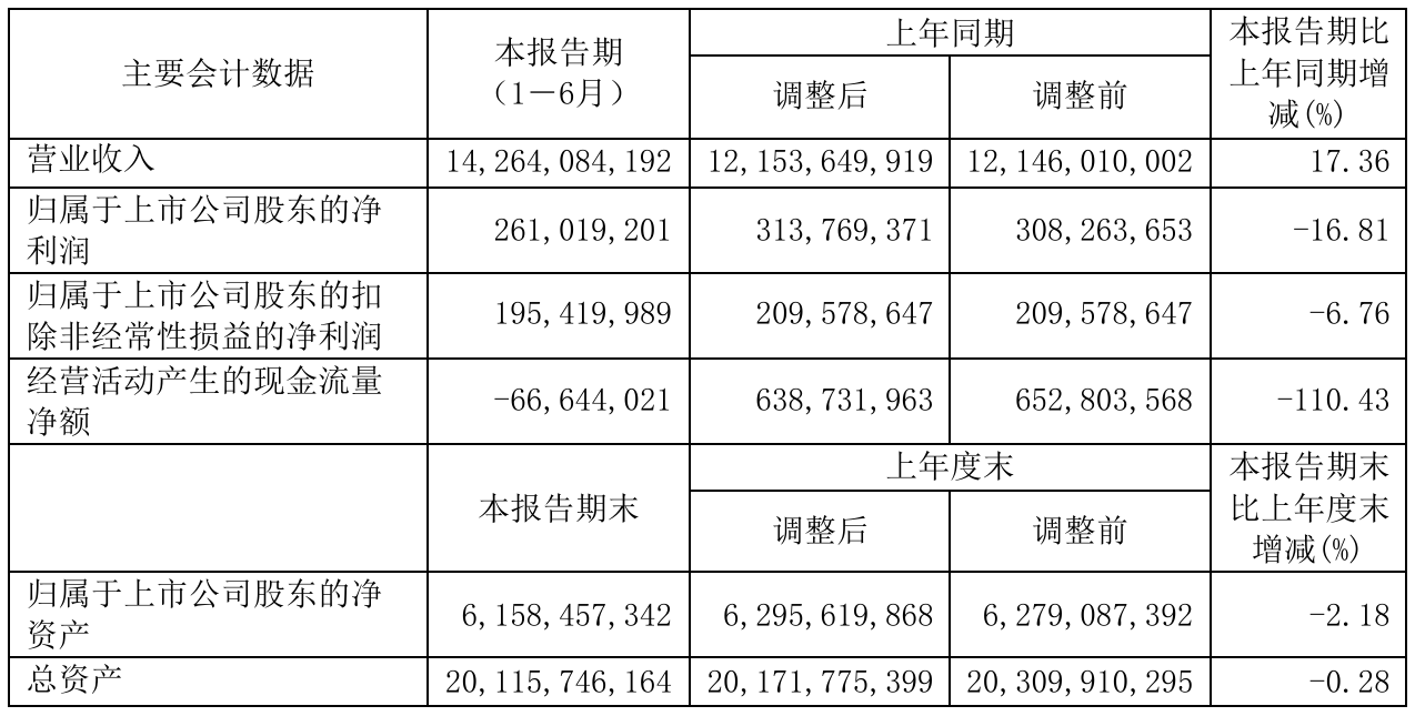 挖贝网8月31日,光明乳业(600597)近日发布2021年半年度报告,报告期内营业收入14,264,084,192元,同比增加17.36%;净利261,019,201元,同比净利减少16.81%。