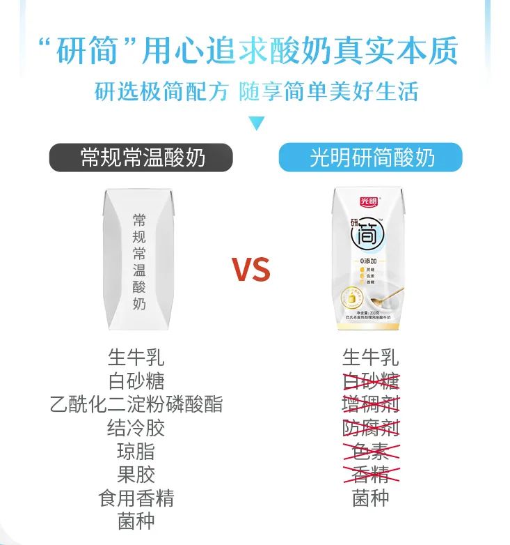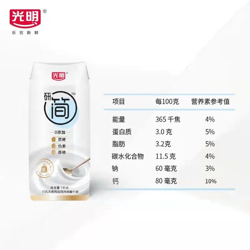 基于此,光明研简酸奶,采用0添加配方,0蔗糖、0色素、0香精,健康纯粹好酸奶,是注重健康人士的首选酸奶品牌!