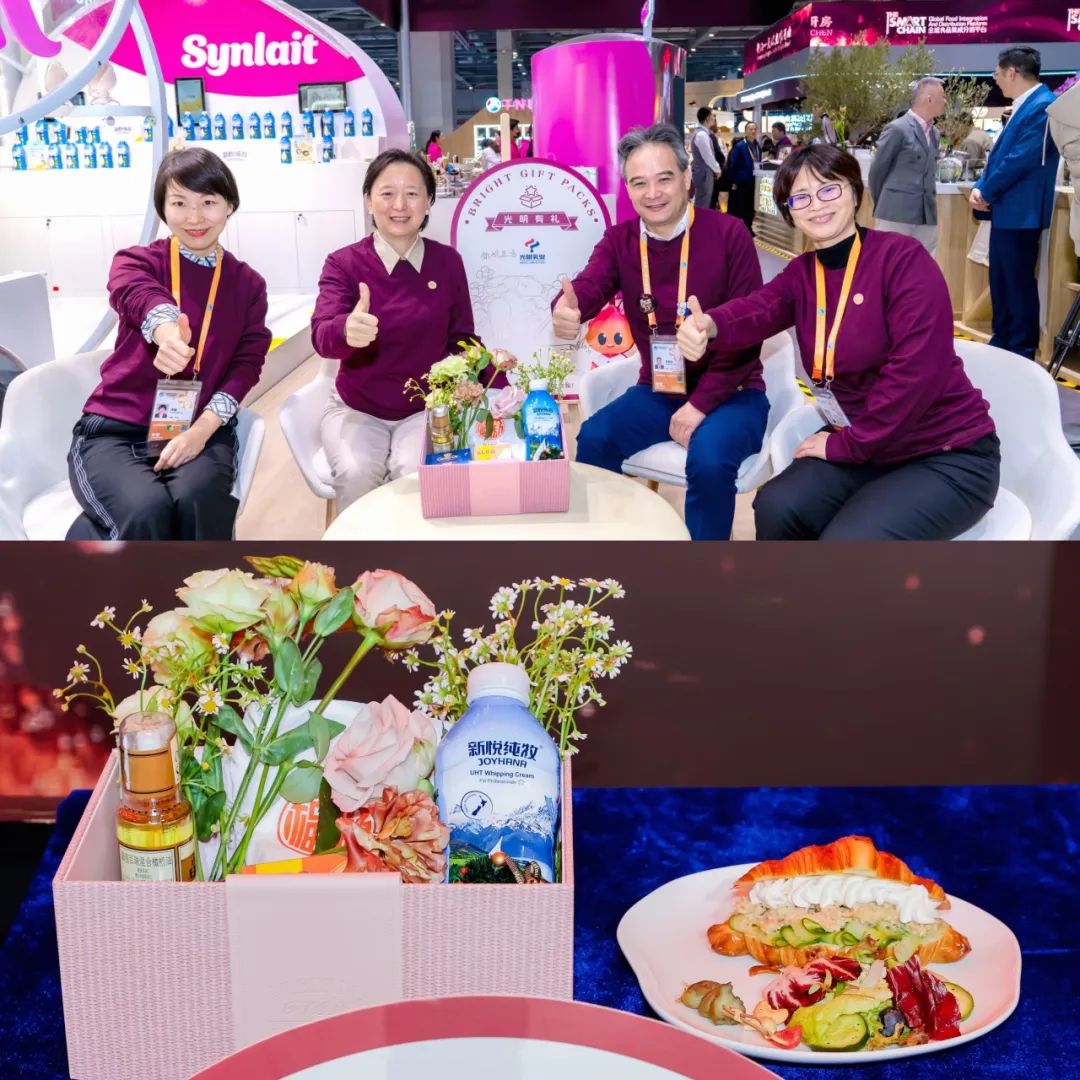 光明食品集团领导与光明乳业领导共同用“光明有礼”全球美食集成包制作了一款专属光明乳业的精致早餐,并获得“最佳全球美味奖”。新的一天从光明开始,用新莱特新悦纯牧超高温灭菌稀奶油制作的超美味早餐和愉悦身心的鲜花将伴随着大家每一天的快乐和健康。