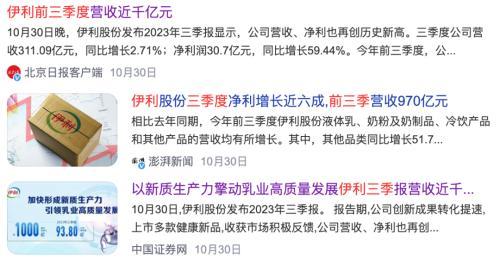 是行业问题吗?领军者伊利股份前三季度营收已高达近1000亿元,多项指标保持增长态势。