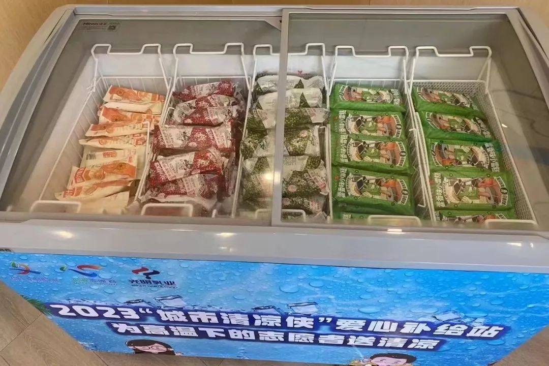 这些补给站为环卫工人、外卖小哥、快递员、社区民警等户外工作者提供光明冷饮,在高温下为他们撑起了一片清凉的港湾,让户外工作者在辛苦劳作之余,能感受到一份贴心的关怀。