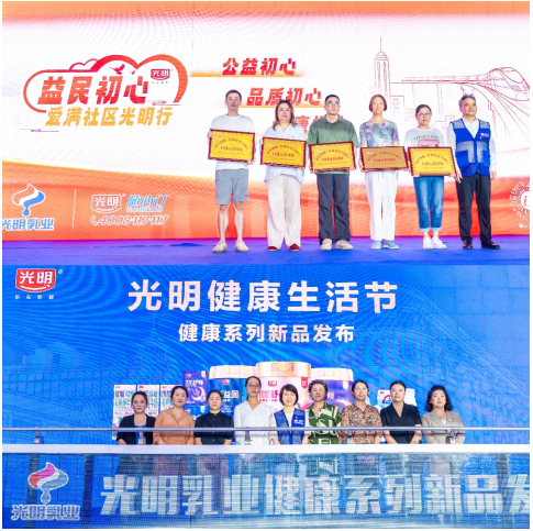 在“健康中国”国家战略指引下,光明乳业始终坚守“乳业报国”初心,以实际行动践行“守护民族体魄”的使命担当,让品质乳品成为国民健康的坚实守护。光明乳业党委书记、董事长黄黎明在致辞中表示,光明乳业首创“光明健康生活节”,通过大规模走进社区、贴近消费者的方式,零距离传递健康生活理念。现场,黄黎明向五家社区居委代表授予“益民初心·爱满社区光明行”共建示范社区牌匾,让“益民初心”的公益行续写新篇章。启动仪式上,光明乳业全新健康系列新品正式亮相,光明乳业党委副书记、总裁贲敏与消费者代表、经销商代表共同为新品揭幕。系列新品精准聚焦当代消费者在控糖、补钙、便捷营养补充等方面的多元健康需求,从日常饮品到营养辅食,全方位覆盖不同人群的健康痛点。