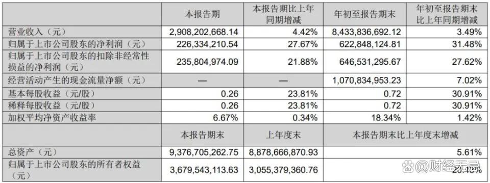 2025年1-9月,新乳业实现营业收入84.34亿元,同比增长3.49%;归母净利润6.23亿元,同比增长31.48%。
