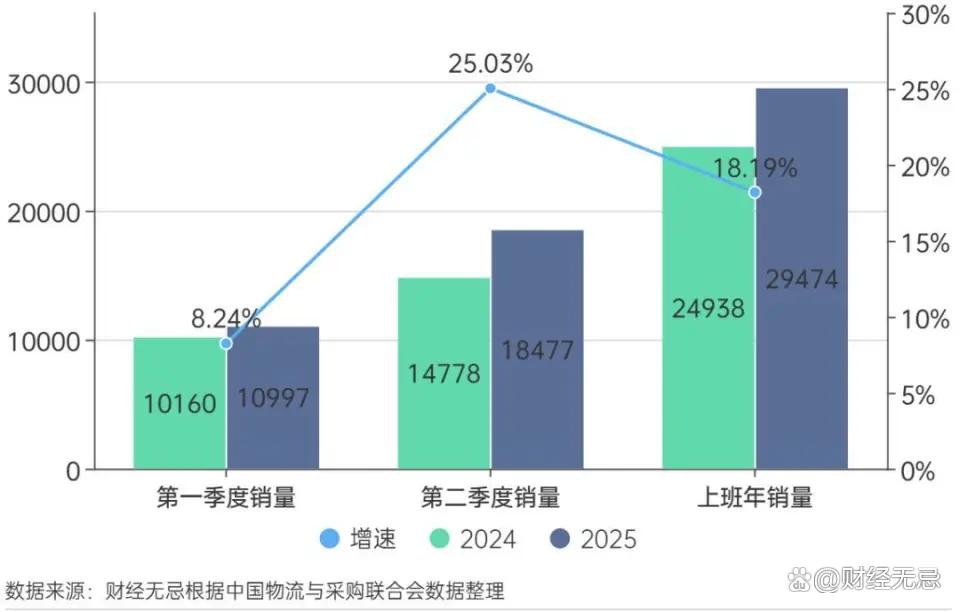 到了2025年,基建仍在继续提速,根据中国物流与采购联合会数据,2025上半年全国冷藏车销量同比增18.19%,新能源冷藏车销量暴涨119.61%。