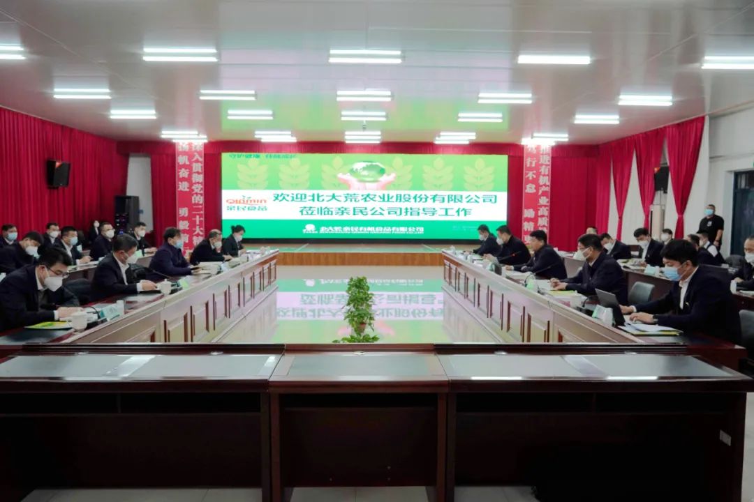 1月29日,黑龙江北大荒农业股份有限公司党委副书记、总经理马忠峙带领参观调研团到北大荒集团北安分公司,就“北安模式”等方面工作进行参观调研。北安分公司党委书记李炳刚,党委副书记、总经理彭荣君,党委委员、副总经理王宏忠陪同参观调研。