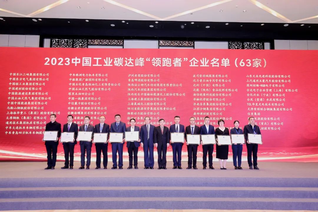 中国工业碳达峰论坛活动是由中国工业经济联合会发起主办,国家发改委等八大政府部门参与指导,旨在选出具有引领带动作用的优秀企业和具有推广价值的先进技术,为我国工业绿色低碳转型和高质量发展打造沟通和交流平台,助力工业领域更好地开展碳达峰和高质量发展工作。63家企业获2023中国工业碳达峰“领跑者”殊荣。