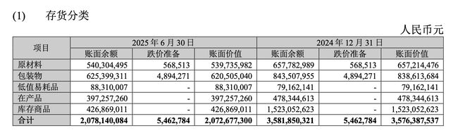 青岛啤酒今年上半年存货数据。(截图来源:公司年报)