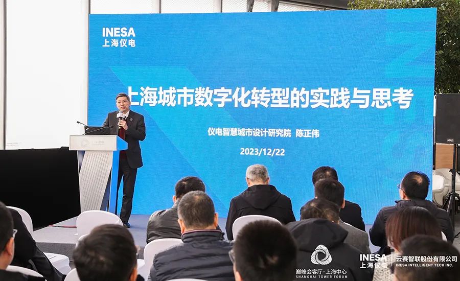 在随后的嘉宾分享环节中,云赛智联首席架构师、仪电智慧城市设计研究院常务副院长陈正伟围绕城市数字化转型的背景、政策及发展演化现状,深入分享了上海仪电和云赛智联在城市数字化转型领域的实践与探索,特别是在顶层设计、标准规范、总集成总运营等服务模式方面的经验和成果,并聚焦于智慧安防、智慧水务、智慧园区等领域介绍了上海中心大厦“数智大脑”、上海水务集团智慧供水平台、世博文化公园一体化运营管理平台等标杆案例,展示了云赛智联在数字治理、数字生活以及企业数字化转型中的实践经验和综合实力。