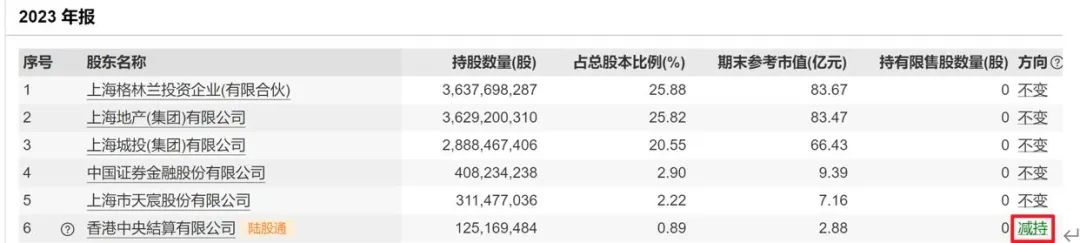 早在2022年和2023年,绿地控股第一大股东上海格林兰及香港中央结算有限公司就分别进行过减持。