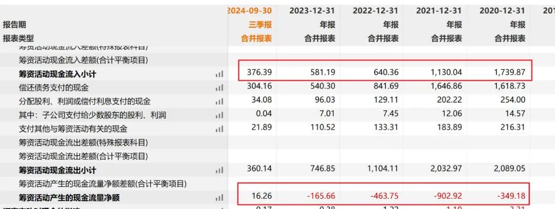 经营状况的恶化,也对公司融资造成影响。2020年至今,公司筹资活动现金流呈持续流出状态。