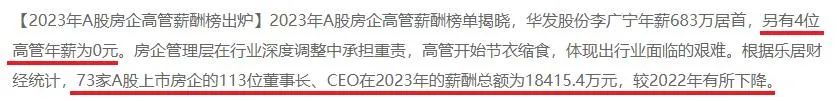 这几年房地产业渐入寒冬,大家纷纷省吃俭用。很多公司高管主动降薪,甚至有4位高管年薪是0元。