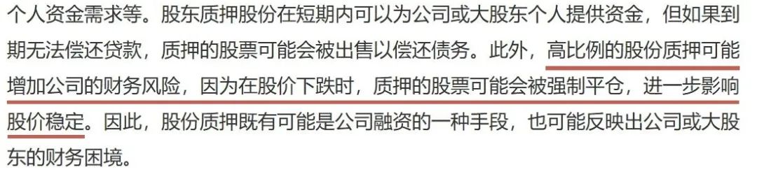 根据普通常识,高比例的股权质押带来的风险不可小觑。尤其在股价下跌时,质押的股票可能会被强制平仓,进一步影响股价稳定。