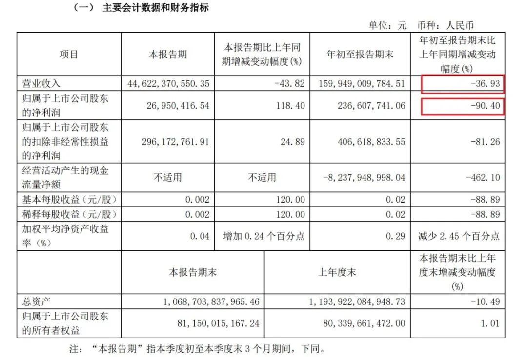 绿地控股今年前三季度营收约1601亿元,同比下滑约37%;归母净利润2亿多元,同比下降90%。