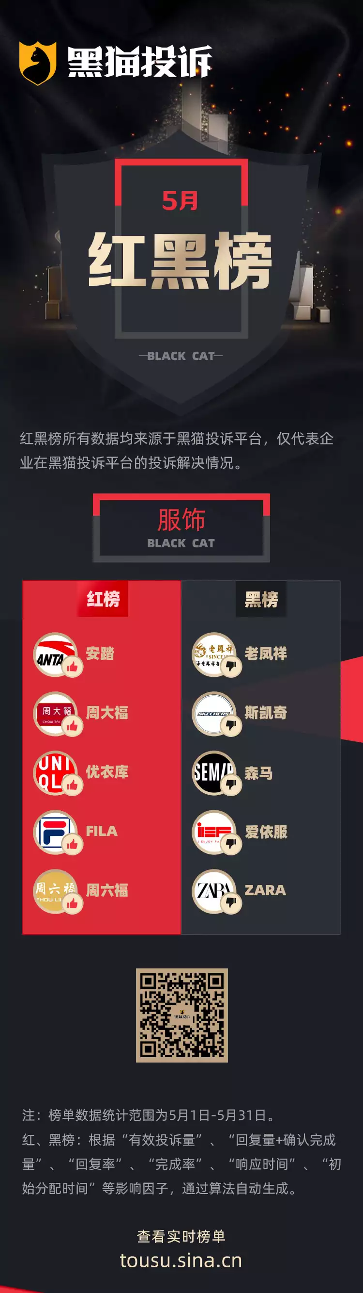 黑猫投诉发布5月份企业投诉处理红黑榜单,数据均来源于黑猫投诉平台,反映了企业在黑猫投诉平台的投诉处理解决情况。