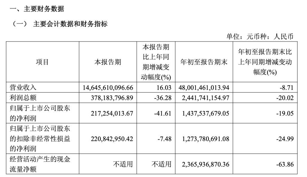 从单季度表现来看,第三季度营业收入146.46亿元,同比增长16.03%,表面上显现回暖迹象。然而,收入增长却未能带动利润提升,当季归母净利润2.17亿元,同比大幅下滑41.61%,出现明显的“增收不增利”现象。第三季度扣非归母净利润2.21亿元,同比下降7.48%,虽较前三季度整体25%的降幅有所收窄,但仍未摆脱负增长困境。