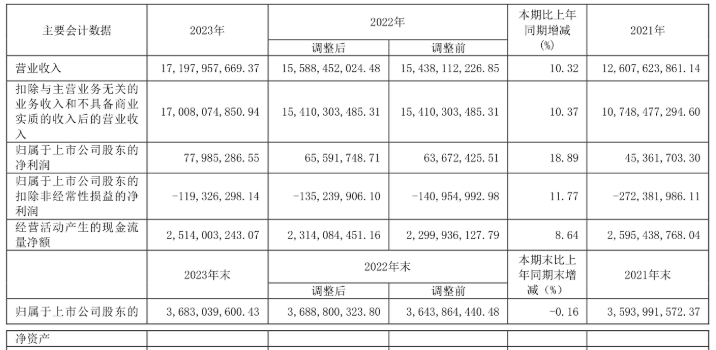 数据显示,2023年公司加权平均净资产收益率为2.09%,较上年同期增长0.3个百分点;公司2023年投入资本回报率为1.21%,较上年同期增长11.17个百分点。