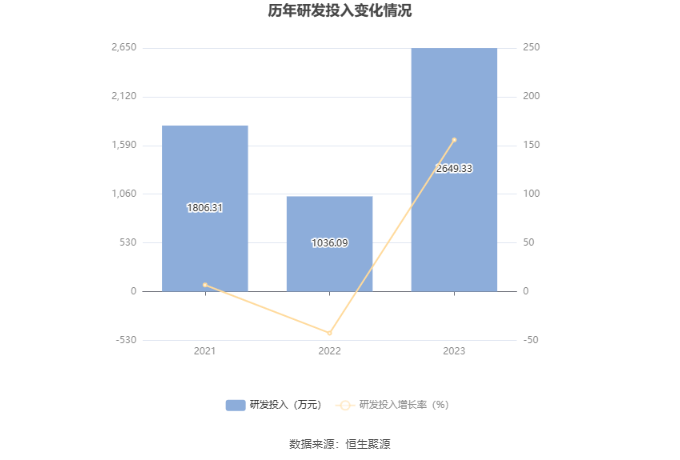 2023年全年,公司研发投入金额为2649.33万元,同比增长155.70%;研发投入占营业收入比例为0.15%,相比上年同期上升0.08个百分点。此外,公司全年研发投入资本化率为0。