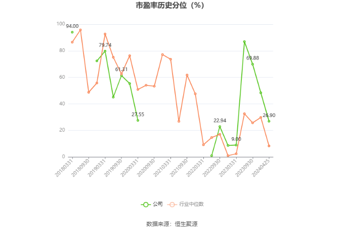 市盈率为负时,不显示当期分位数,会导致折线图中断。