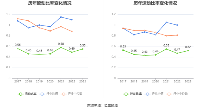 2023年,公司流动比率为0.55,速动比率为0.52。