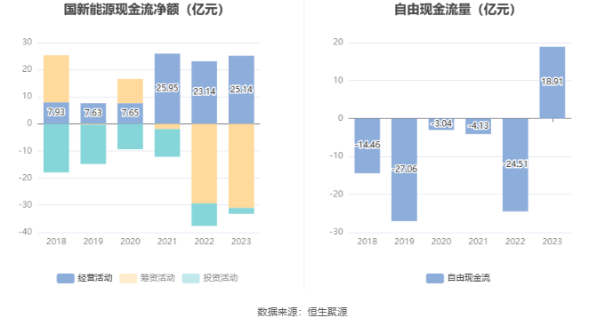 进一步统计发现,2023年公司自由现金流为18.91亿元,上年同期为-24.51亿元。