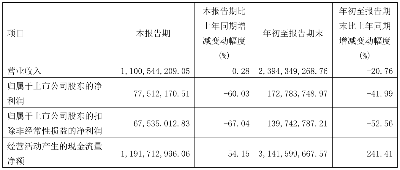 10月29日,光大嘉宝(600622)近日发布2021年前三季度报告,报告期内营业收入2,394,349,268.76元,同比减少20.76%;净利172,783,748.97元,同比净利减少41.99%。