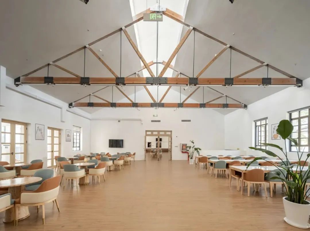 ▲更新后的餐厅内部(传承既有桁架的结构体系)