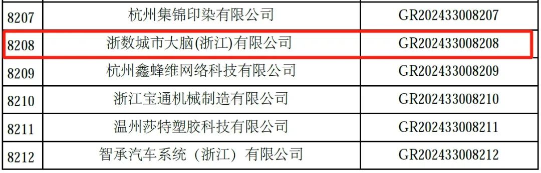 近日,全国高新技术企业认定管理工作领导小组办公室发布了《对浙江省认定机构2024年认定报备的高新技术企业进行备案的公告》,浙数文化旗下浙数城市大脑(浙江)有限公司、杭州苕华网络技术有限公司及重要参股企业杭州弈战数字技术有限公司成功通过国家高新技术企业认证。这意味着浙数文化高新技术企业梯队再添新军。目前,公司旗下累计已有24家企业通过国家级高新技术或双软企业认证。