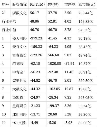 从行业市盈率排名来看,公司所处的游戏行业市盈率平均48.86倍,行业中值46.76倍,浙数文化排名第21位。