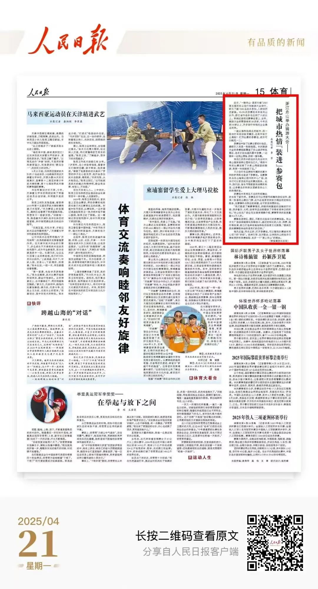 《人民日报》分享舟山骑游大会——