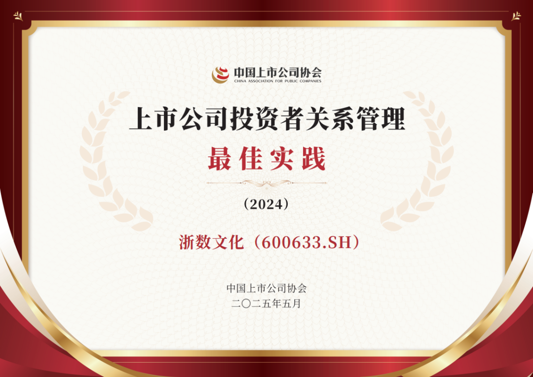 本次入选中国上市公司协会“投资者关系管理最佳实践案例”是对浙数文化投资者关系管理工作的肯定,是公司一直以来与资本市场携手同行、深度互信的成果。未来,公司将持续推动高标准价值传递、高质量信息披露和高水平股东回报,为广大投资者创造更大价值。