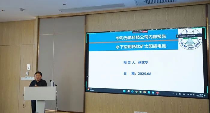 张文华教授围绕水下应用钙钛矿太阳能电池,结合自身科研经历及实验数据,详细分析了不同水深环境下钙钛矿太阳能电池的发电性能差异,同时分享了钙钛矿水下光伏电池的关键技术突破,并对该技术的产业化推进路径与前景作出预判,为集团探索新兴能源领域提供技术参考。