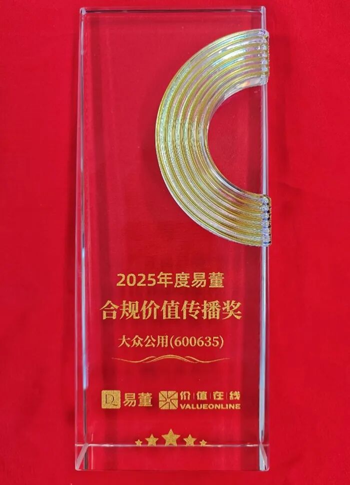 近日,大众公用凭借在合规管理体系建设的出色表现,荣获价值在线评出的“2025年度易董合规价值传播奖”。