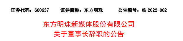 上交所上市公司东方明珠新媒体股份有限公司(以下简称“东方明珠”,600637.SH)昨日晚间发布公告称,公司近日收到董事长王建军的书面辞呈。
