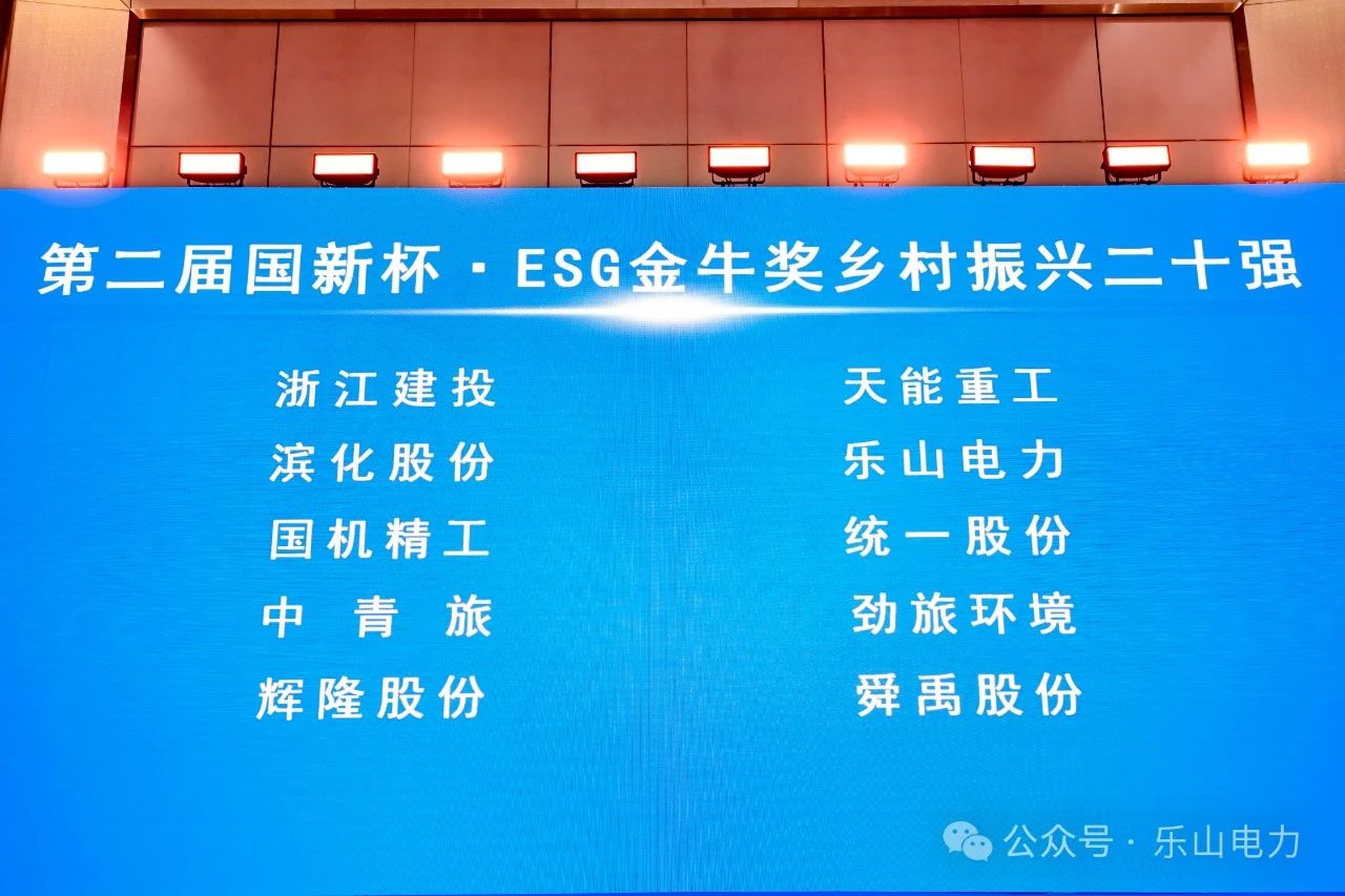 12月6日,由中国证券报和中国国新控股有限责任公司联合主办的2024金牛企业可持续发展论坛暨第二届国新杯·ESG金牛奖颁奖典礼在上海青浦区举行。乐山电力凭借扎实开展的ESG实践成果,荣获“ESG金牛奖乡村振兴二十强”殊荣。