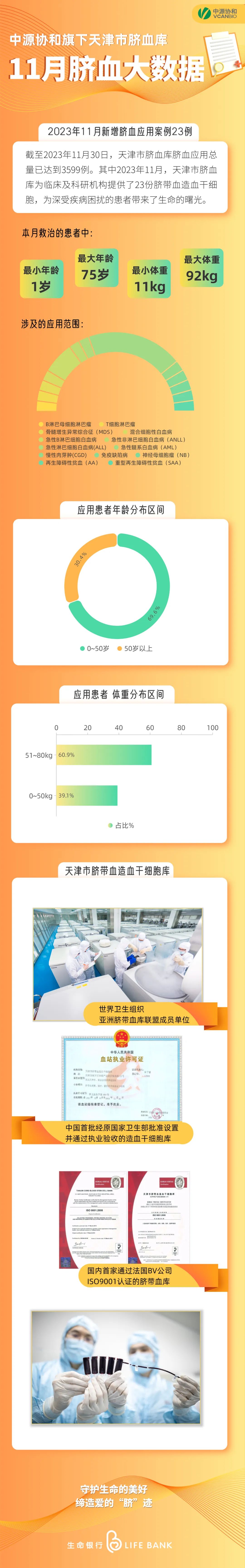 脐血大数据 | 中源协和旗下天津市脐血库11月新增23例脐血应用案例