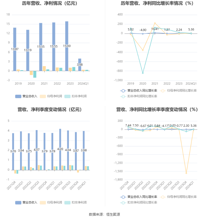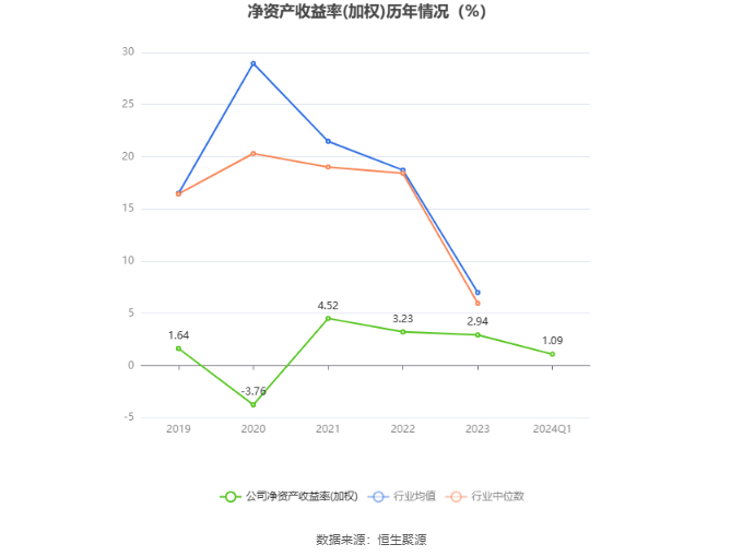 数据显示,2024年第一季度公司加权平均净资产收益率为1.09%,较上年同期增长0.04个百分点;公司2024年第一季度投入资本回报率为0.96%,较上年同期增长0.12个百分点。