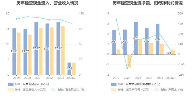 2024年第一季度,公司营业收入现金比为100.86%,净现比为53.36%。