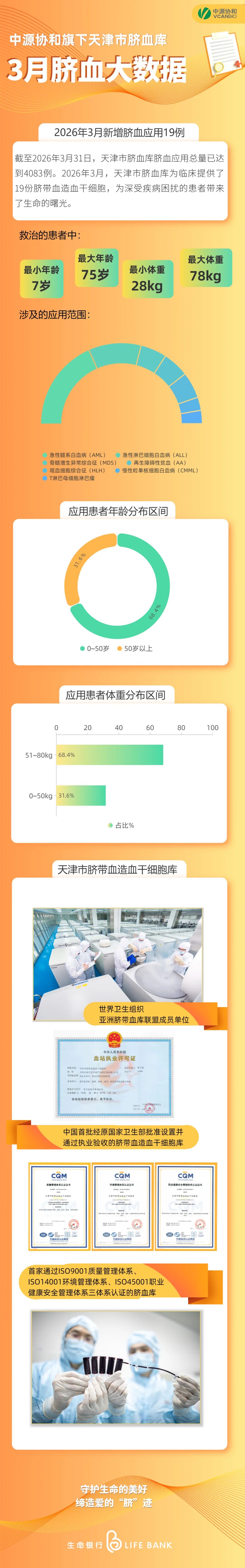 脐血大数据丨中源协和旗下天津市脐血库脐血应用总量已达4083例