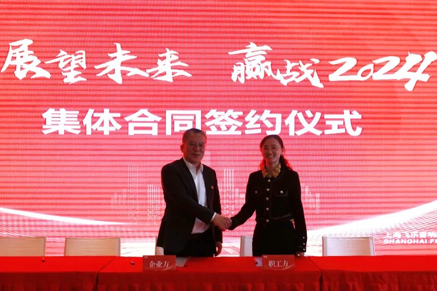 公司党委书记、总经理金新,工会主席王海云分别代表企业方、职工方签署《集体合同》《女职工权益保护专项集体合同》。