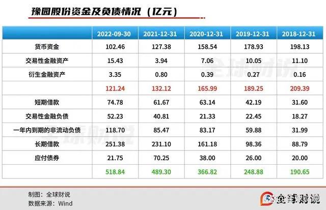 目前来看,豫园股份的负债压力着实不小,截至2022年9月30日,上市公司有息负债达550亿元,同期货币资金等约为120亿元。