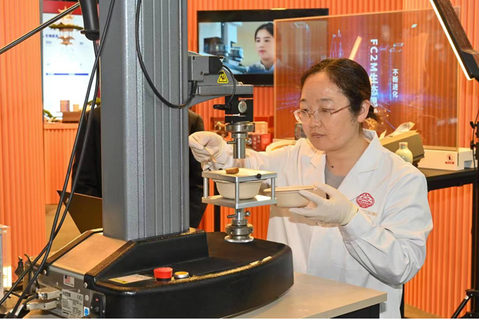 其中,豫园文化饮食集团科创中心带来了老字号餐饮品牌布局预制菜新赛道的研发“利器”——预制食品质构分析仪,现场展示如何检测分析各类食品的酥烂、脆度、弹性等特质,精准的分析研究将更科学地赋能到产品研发与生产环节,保障预制菜产品的口感与质量。据悉,通过科创赋能推出的上海德兴馆大汤包等老字号预制菜产品颇受消费者欢迎。