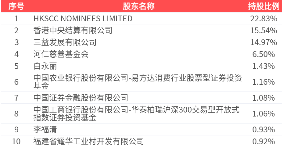 公司股东户数为9.34万户,前十大股东持股数量为17.33亿股,占总股本比例为66.41%,前十大股东持股情况如下: