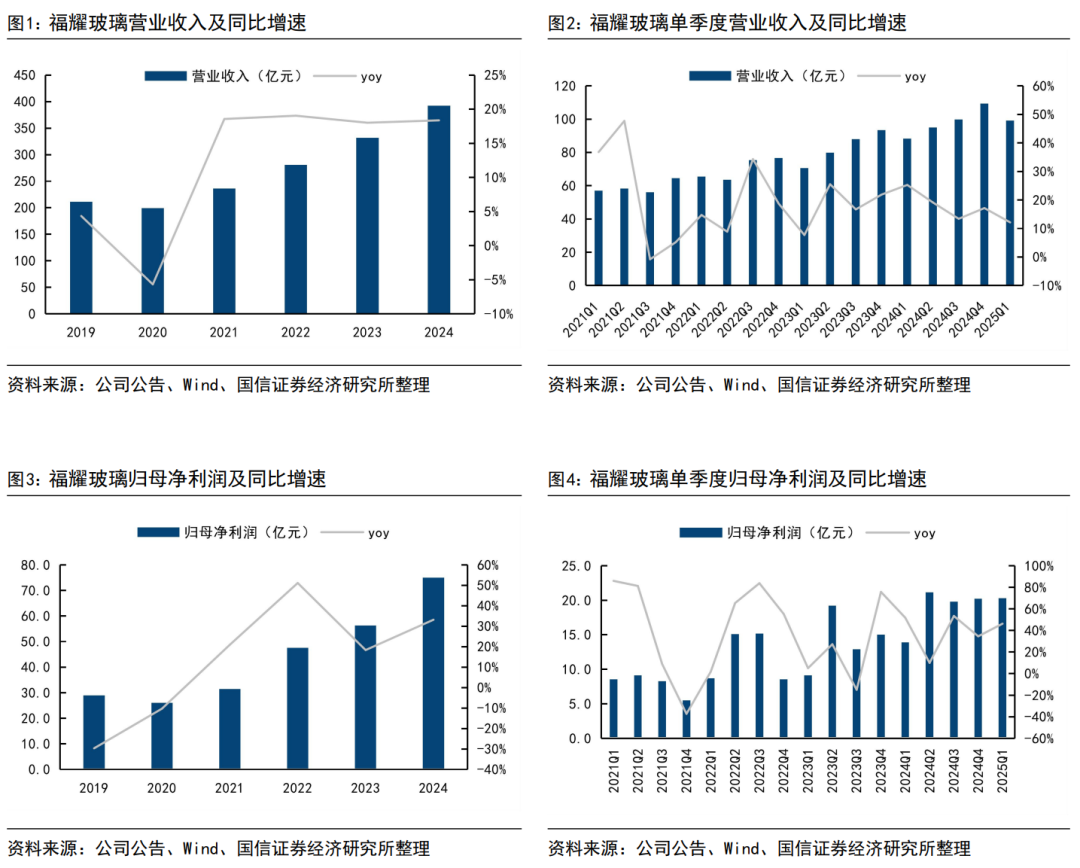 25Q1归母净利润同比增长46%,收入创历史一季度新高。福耀玻璃2025Q1实现营收99.1亿元,同比+12.16%,环比-9.40%;实现归母净利润20.3亿元,同比+46.25%,环比+0.52%;实现归母扣非净利润19.87亿,同比+30.90%,环比+4.83%。