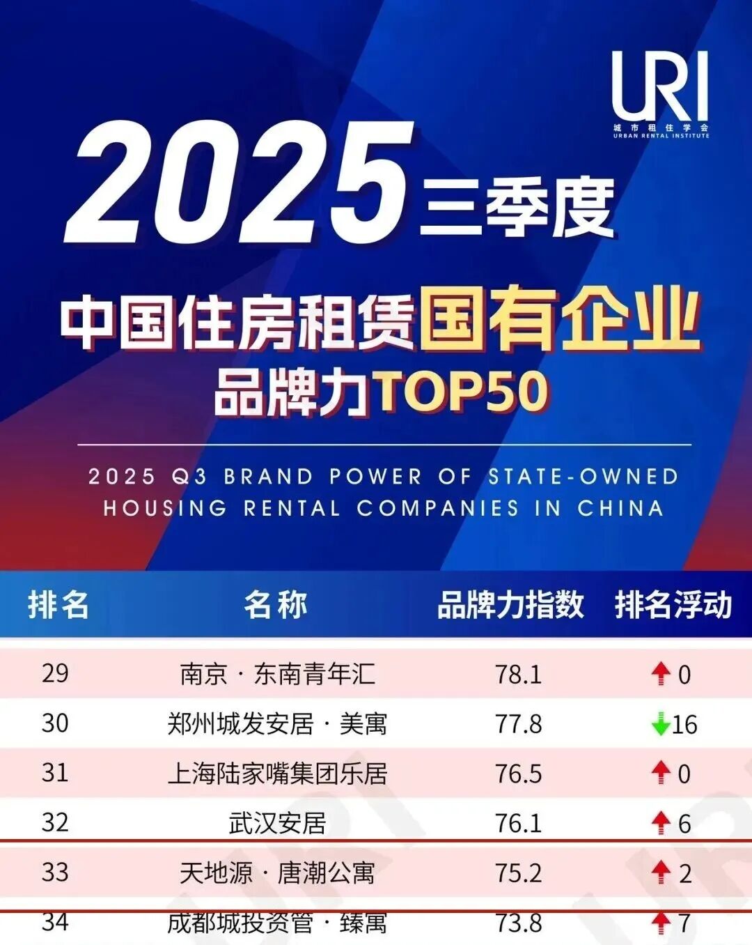2025年10月10日URI研究中心权威发布的《2025年第三季度中国住房租赁国有企业品牌力测评研究报告》正式揭晓,在这场衡量国企住房租赁品牌综合实力的重要评测中,天地源唐潮公寓凭借其卓越的品牌影响力与市场认可度,成功跻身榜单前列,荣膺TOP33。