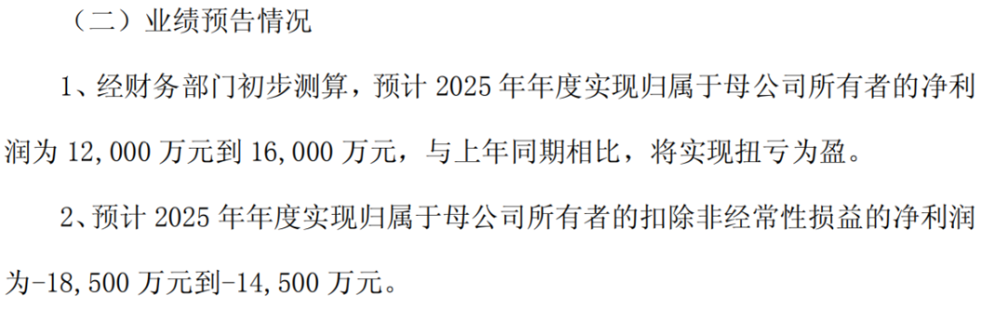 更有说服力的是扣除非经常性损益后的净利润,公司预计2025年全年依然亏损1.45亿到1.85亿元,说白了,主业还是亏的。