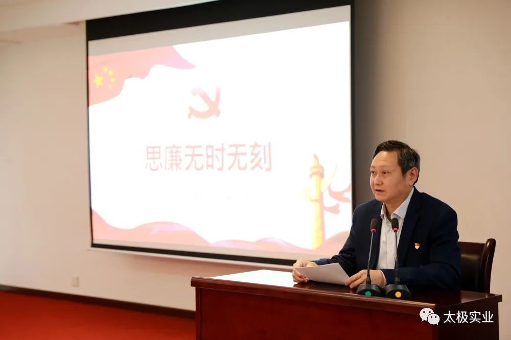 太极实业纪委书记杨少波参加了此次大会并做作动员讲话。他强调,开展“5·10”思廉月系列活动目的就是要深入贯彻落实中央、省委、市委关于全面从严治党的部署要求,把严的主基调长期坚持下去,以永远在路上的状态正风肃纪反腐,持续做好固根基、扬优势、补短板、强弱项工作。通过“5·10”思廉月系列活动,不仅要告诫和提醒广大党员干部知敬畏、存戒惧、守底线,更要引领党员干部学廉、思廉、悟廉、践廉,以实际行动营造崇德倡廉、风清气正的干事氛围。尤其是要突出“一把手”和领导班子的警示教育,督促领导干部用好手中权力,时刻绷紧廉洁自律这根准线,真正做到干大事、干快事、干成事、不出事,以优异成绩迎接党的二十大的胜利召开。